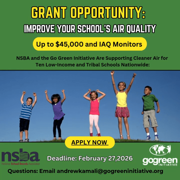 The NSBA/Go Green Initiative IAQ grant provides up to $45,000 in funding plus technical assistance to help school districts improve indoor air quality and reduce greenhouse gas emissions. With only 10 districts selected nationwide each year, competition is significant but a well-crafted application can make the difference.